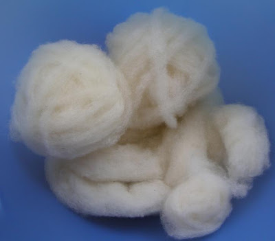 The first day of the TDF resulted in a pretty cloud! There's two balls of pre-drafted cheviot, 28 and 32 grams, a third ball just started, and a strip of roving that supposed to be 1/16th of the giant batt. We'll see what the total weight turns out to be. Maybe this is contest material? "Guess the weight of the batt." I'd have to have readers and a prize first!
